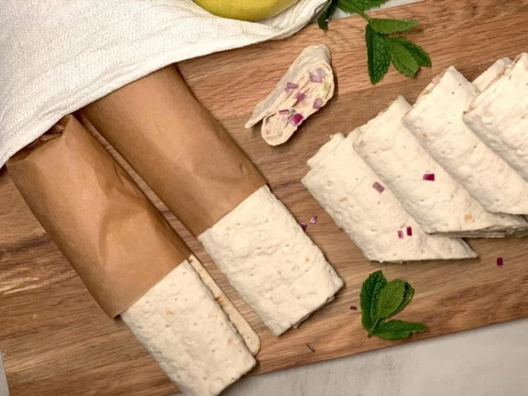 - Lägg ut 8 st tunnbröd och fördela tonfiskröran på tunnbröden.